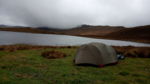 Geschafft übernachteten wir an einer Lagune auf 4250m Höhe. (Wahrscheinlich die einzigen etwa 15 m² weit und breit, auf denen man überhaupt zelten konnte, da dort kein Sumpf und die Fläche halbwegs eben war.
