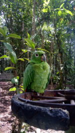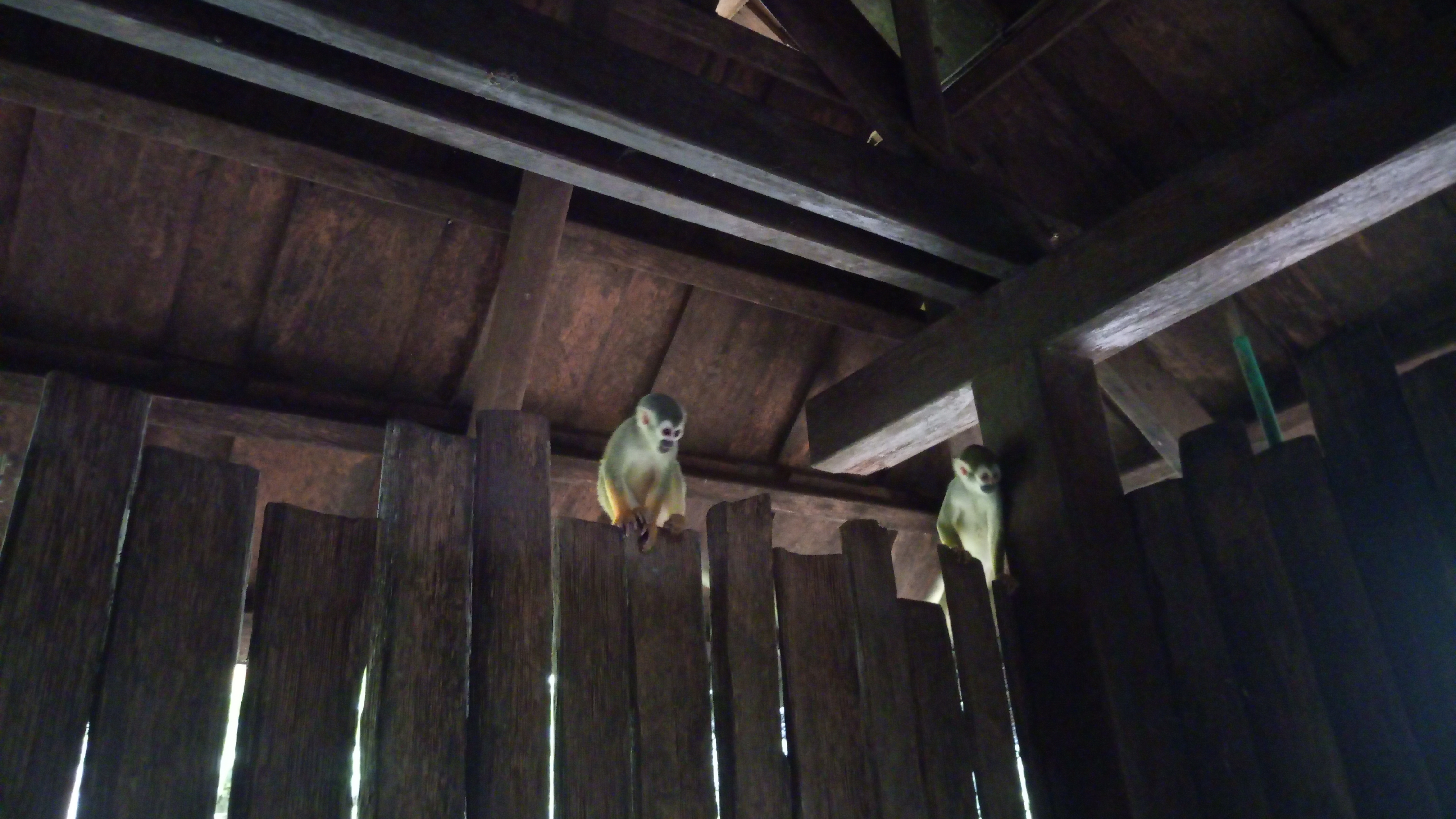 Am nächsten Tag füllten wir einige Bildungslücken aus dem Cuyabeno, indem wir eine nahegelegene Station zur Rettung von Amazonas-Tieren (C.E.A.) besuchten. Die Station war wie ein kleiner Zoo aufgebaut und einige Affen liefen frei herum, die unser Guide mit Bananen anlockte. Endlich konnte ich auch Sonja davon überzeugen, dass ich wirklich einen ca. 2 m langen Fisch im Cuyabeno gesehen hatte – von denen schwammen dort Massen herum.