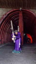 Ein paar in den Fels gehauene Kreuze, anstrengende Lichtinstallationen und einige moderne Skulpturen bemüßigen nun manche Leute dazu, diesen Ort als Kathedrale zu bezeichnen, was er ganz offiziell nicht ist (aber im Englischen und Spanischen wird nicht sauber zwischen Dom und Kathedrale unterschieden), sondern lediglich eine katholische Kirche, zu der drei Hallen der stillgelegten Mine umfunktioniert wurden.