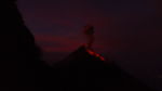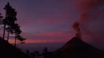 Schon beim Aufstieg konnten wir die Ausbrüche hören. Jedoch verwehrten uns oben Wolken den Blick auf den Vulkan. Wir sahen nur hin und wieder sehr dunkle Wolken, die dem Schlot entwichen waren. Deshalb begnügten wir uns zunächst mit dem Sonnenuntergang. In der Nacht klarte es auf und so konnten wir direkt aus unserem Zelt sehr viele Ausbeüche bewundern. Besonders schön waren diese auch bei Sonnenaufgang. Wegen des Lärms konnten wir ohnehin kaum ein Auge zutun.